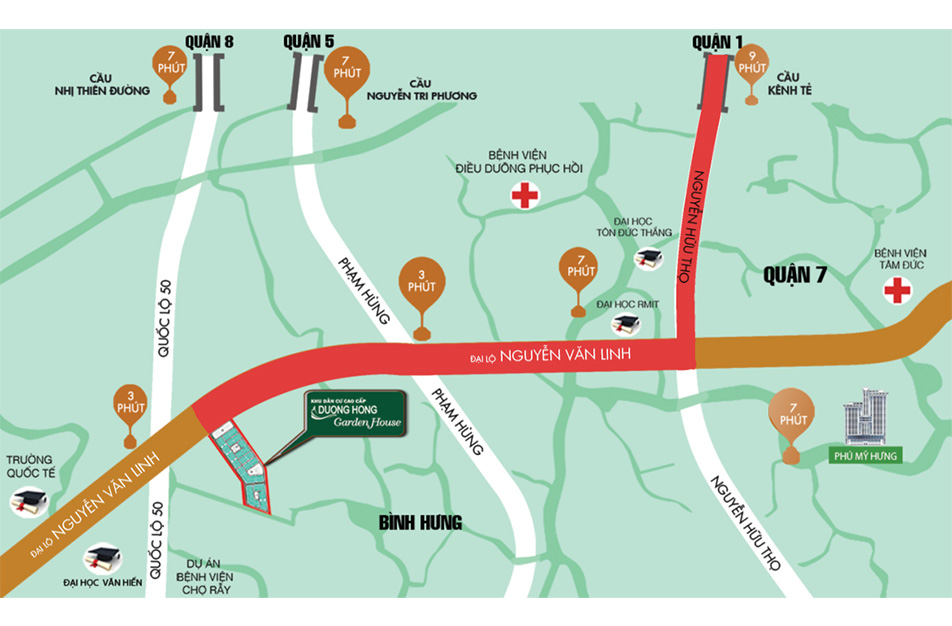 - 7 phút đến Khu đô thị Phú Mỹ Hưng, Cầu Nguyễn Tri Phương